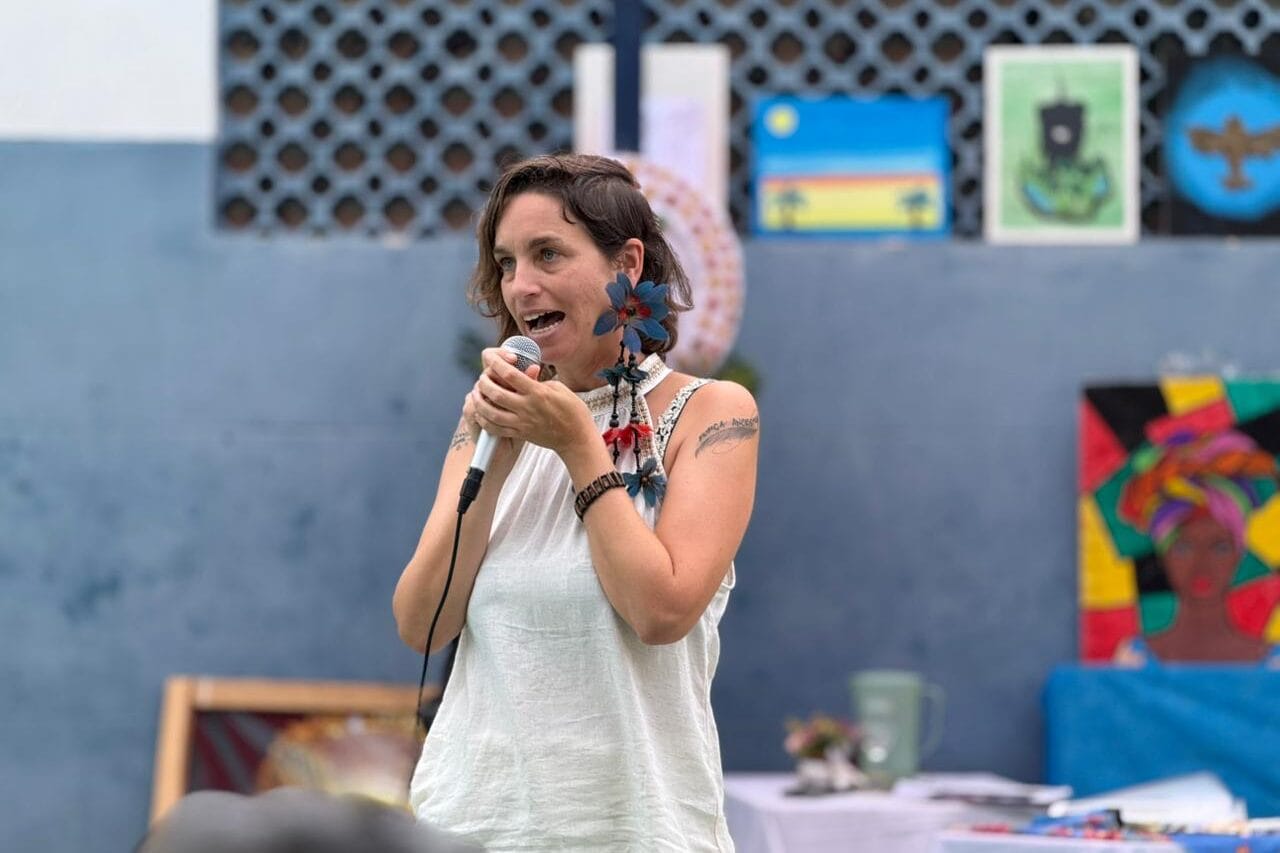 Um dos momentos mais marcantes da manhã foi a participação da poetisa ítalo-suíça Chiara Mari, artista, socióloga e arte-educadora. Dominando o português com naturalidade, Chiara compartilhou poesia e histórias que atravessam fronteiras.