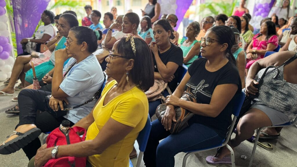 As participantes também puderam desfrutar de uma sessão de cinema com a exibição do curta-metragem “Mar de Mãe”, seguido de uma roda de conversa sobre autocuidado e bem-estar com uma nutricionista.